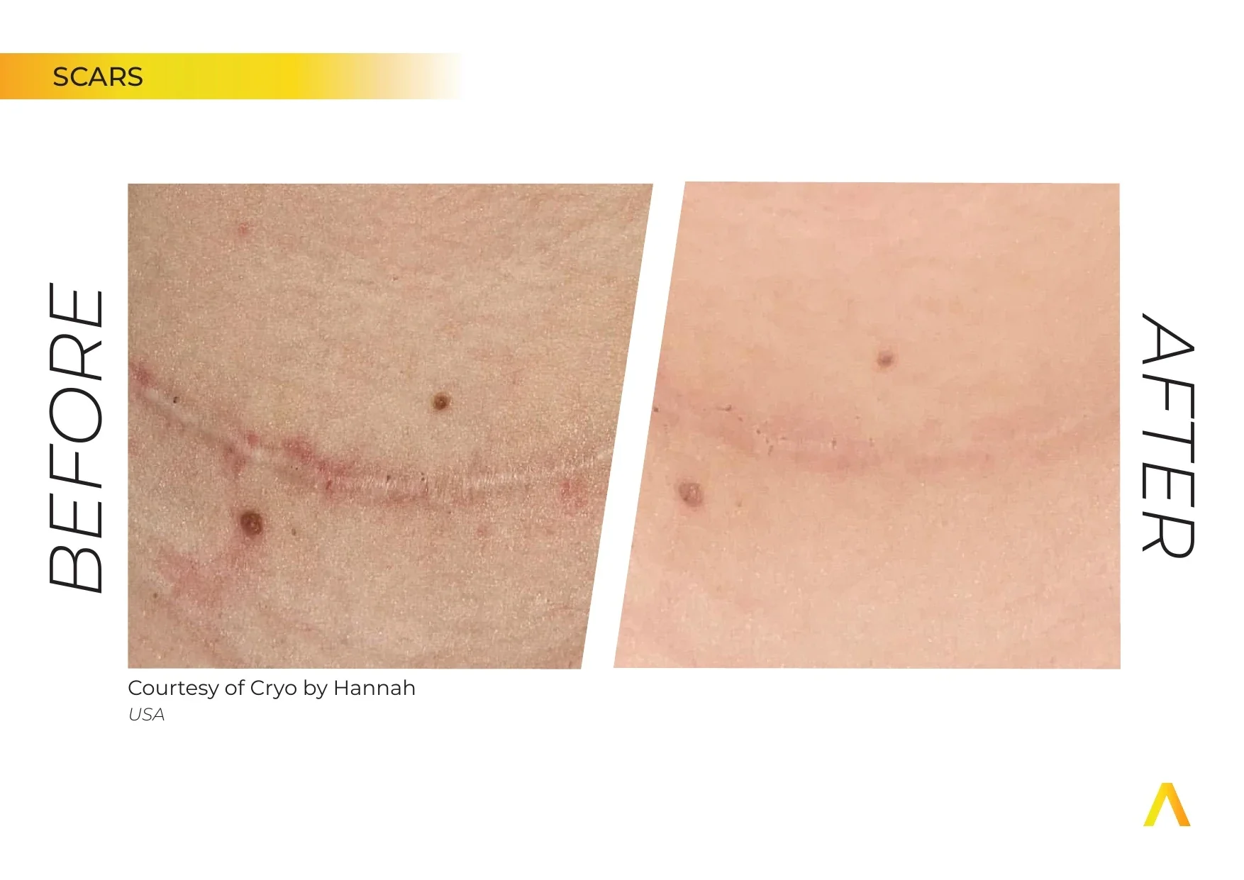 ADVATx® ayuda a reducir gradualmente la apariencia de las cicatrices con tratamientos sucesivos. La longitud de onda de 589 nm disminuye el enrojecimiento y la definición de la cicatriz, mientras que la longitud de onda de 1319 nm estimula la producción de colágeno, mejorando la textura con el tiempo.