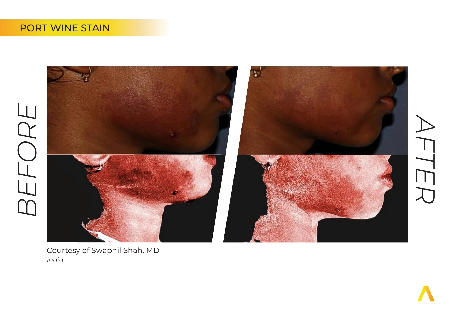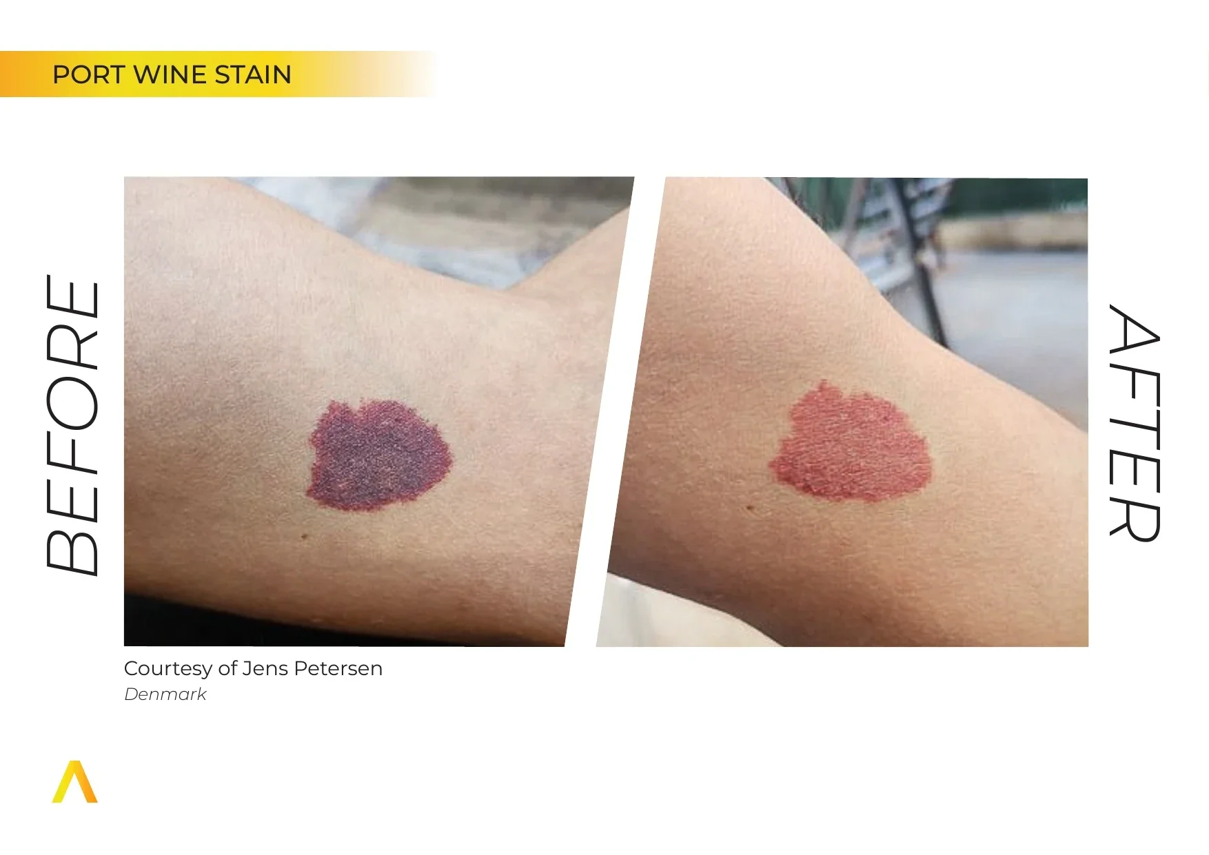 Marcas de nacimiento y lesiones pigmentadas – incluyendo manchas de vino de Oporto.