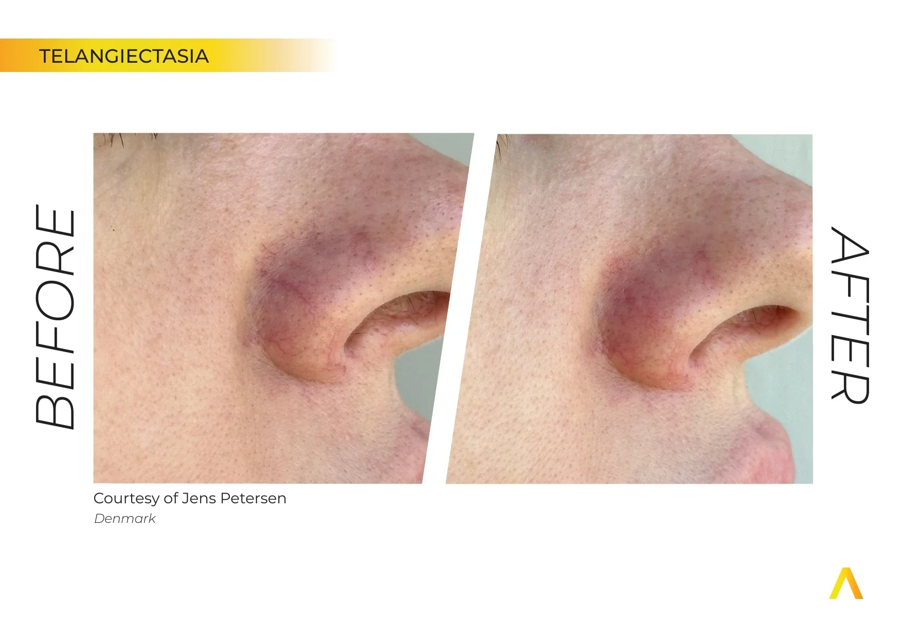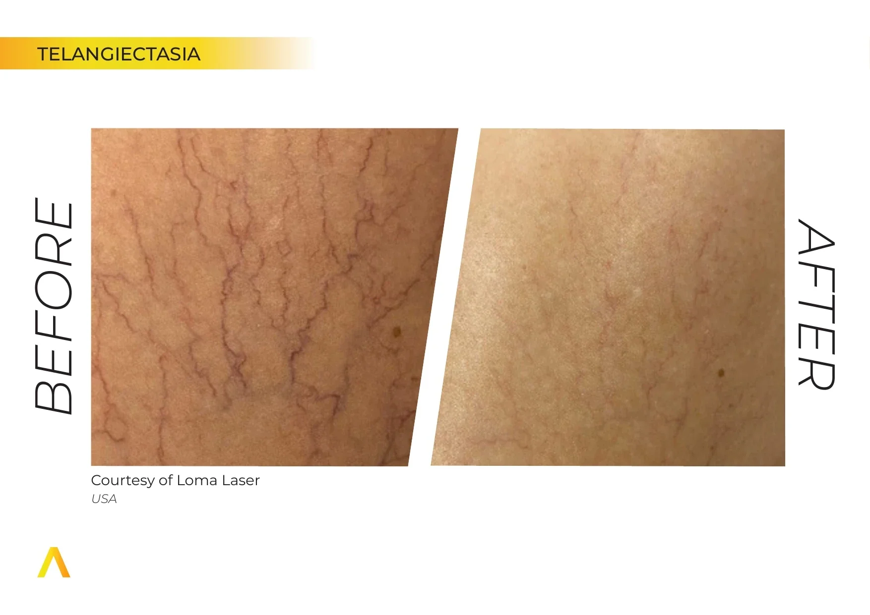 Con la tecnología patentada PulSync, ADVATx® trata de forma segura una amplia variedad de alteraciones vasculares sin tiempo de recuperación para el paciente. La longitud de onda de 589 nm, absorbida de forma preferencial por la oxihemoglobina, aborda eficazmente las preocupaciones vasculares sin provocar hematomas ni púrpura.