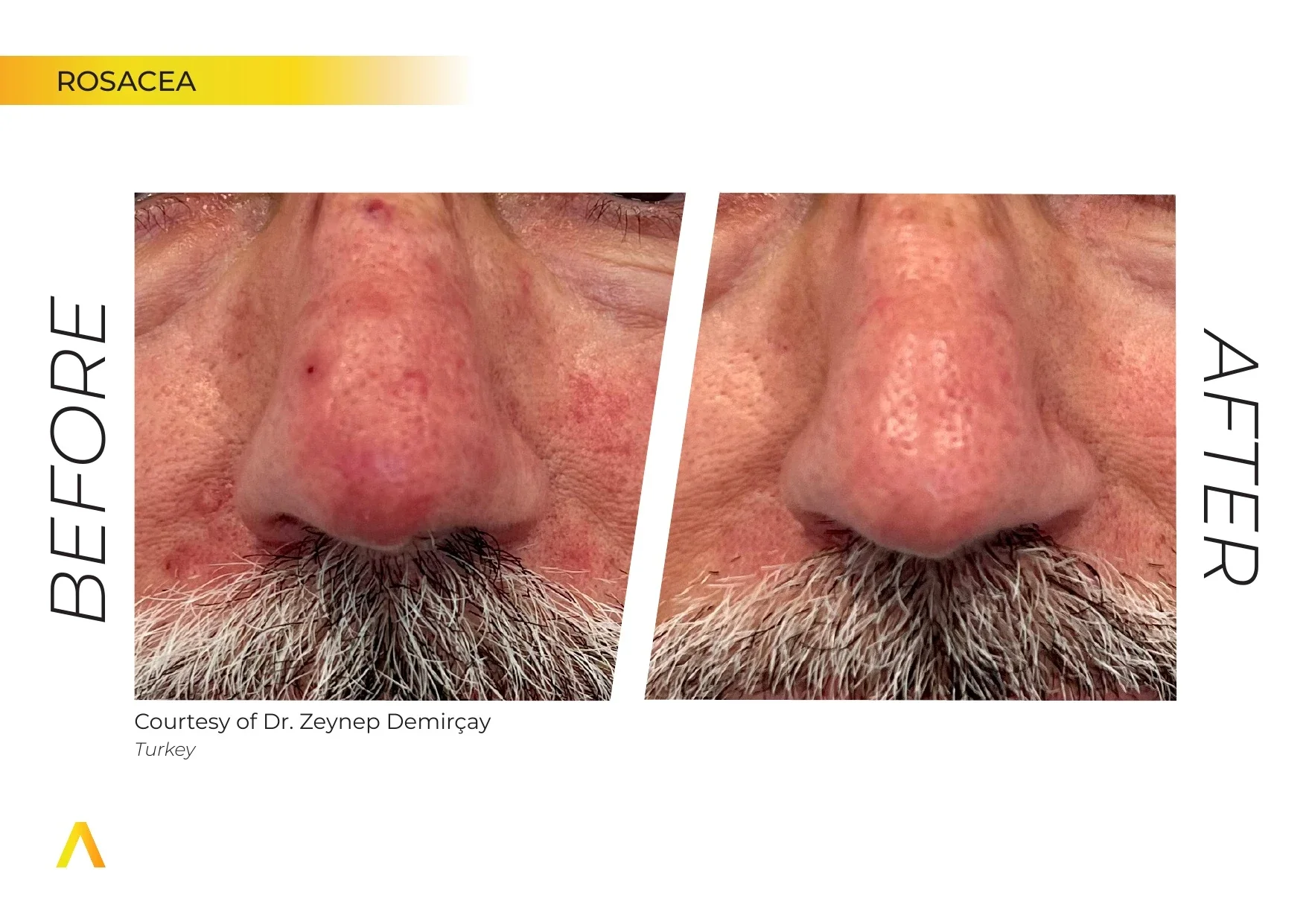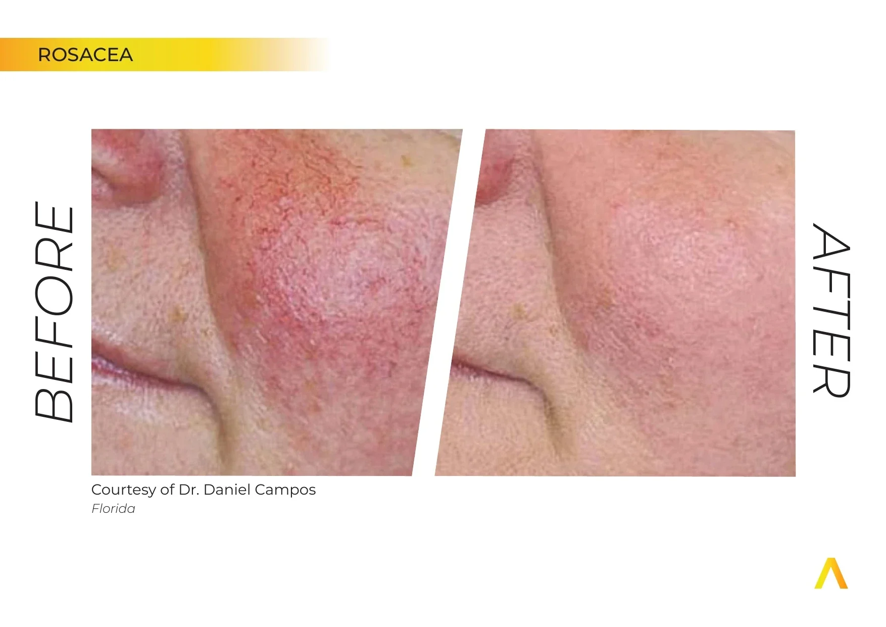 Rosácea y eritema – reduce el enrojecimiento facial y las lesiones vasculares asociadas.