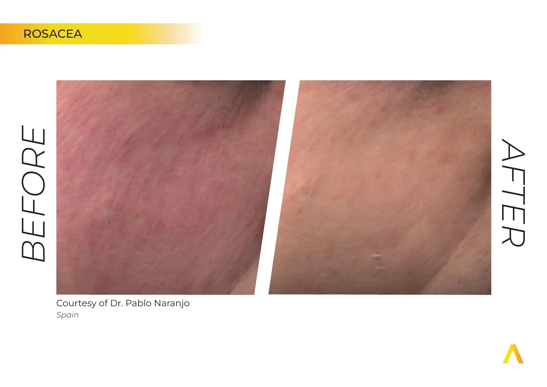 ADVATx® trata la rosácea con longitudes de onda duales de 589 nm y 1319 nm, actuando sobre las alteraciones vasculares y reduciendo el enrojecimiento y la textura irregular de la piel. Este enfoque avanzado favorece un tono más uniforme y aborda los síntomas más comunes de la rosácea con efectos secundarios mínimos.