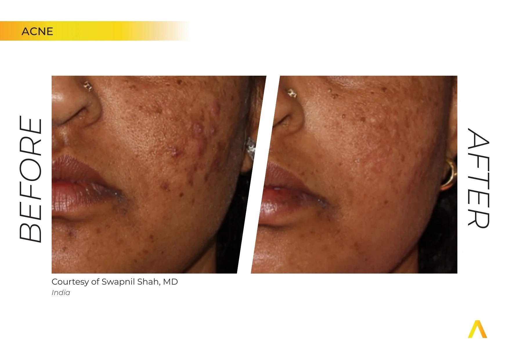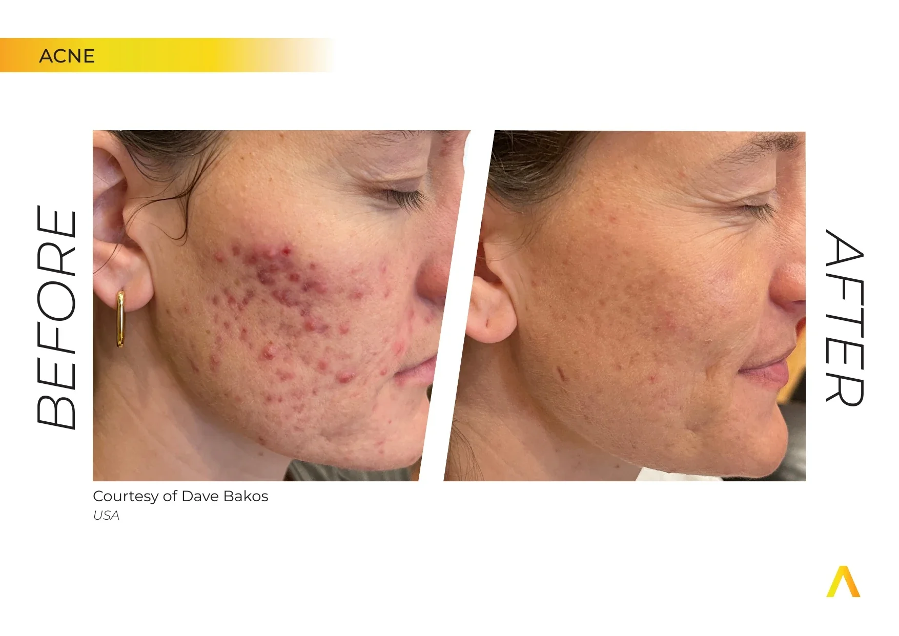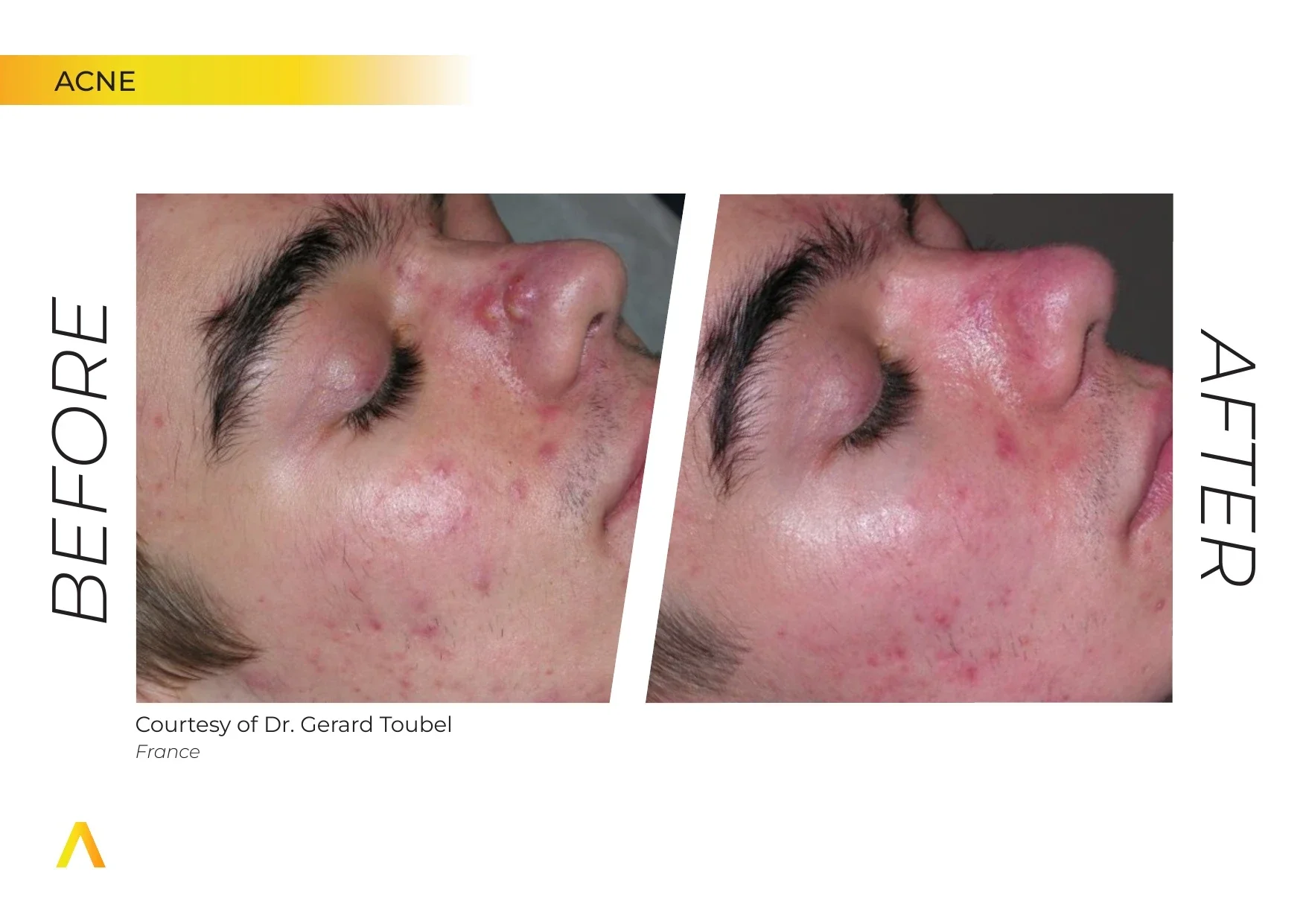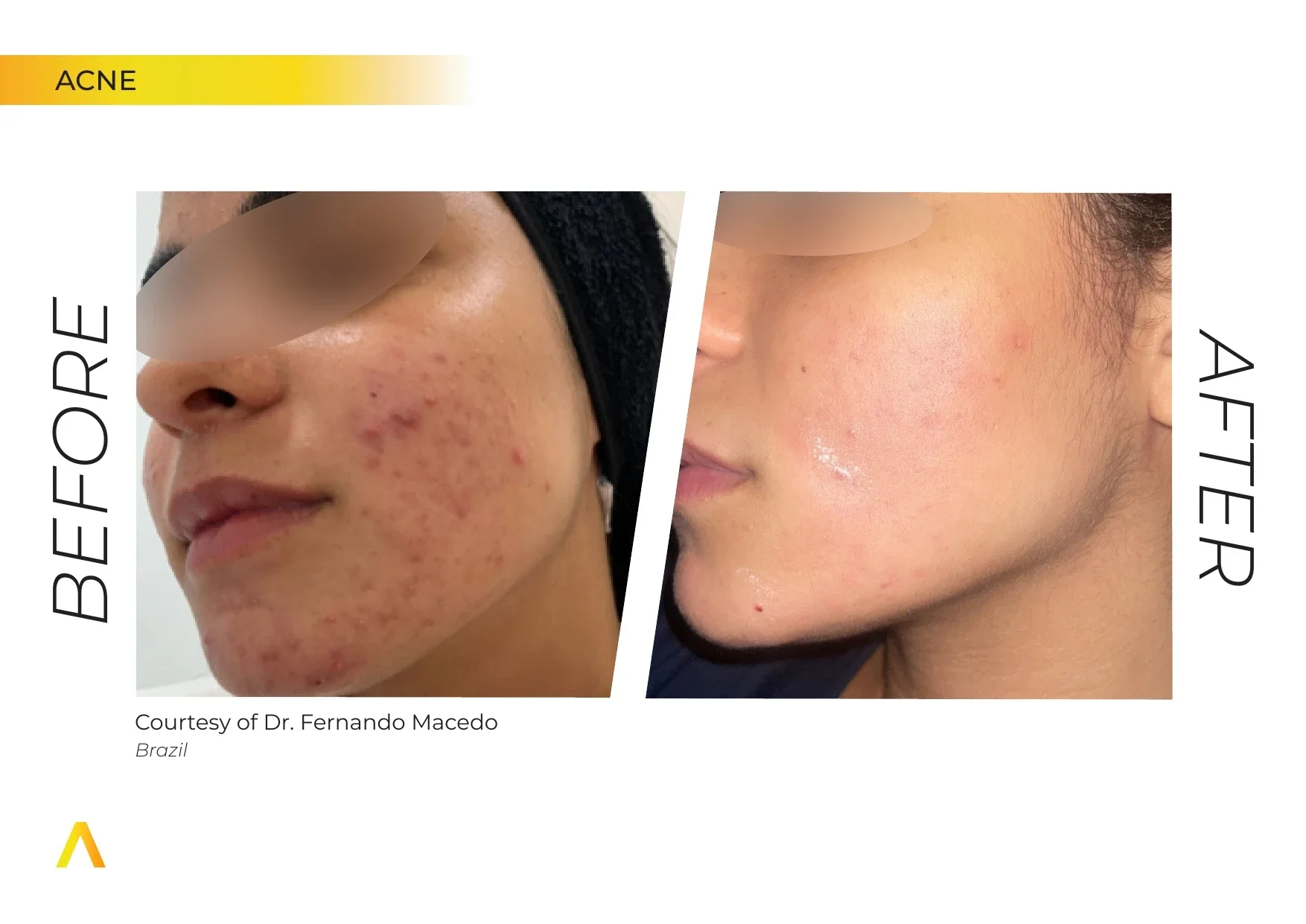 Utilizando ambas longitudes de onda, 589 nm y 1319 nm, ADVATx® trata el acné activo al reducir la carga de porfirinas en la piel y generar un efecto térmico sobre las glándulas sebáceas, regulando la producción de sebo y grasa.